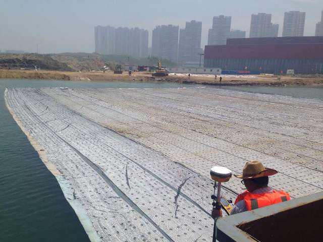 鋪設土工布軟體排時的技術要求,首先,向前推進導堤時,一定要提前使用土工布軟體排護底。其次,鋪設軟體的時候,為避免產生沖溝,要盡量的單向推進。再者,為確保導堤符合沖刷規定,要確保其寬度符合規定。最后,做好已鋪設完成的余排項目的監測活動。