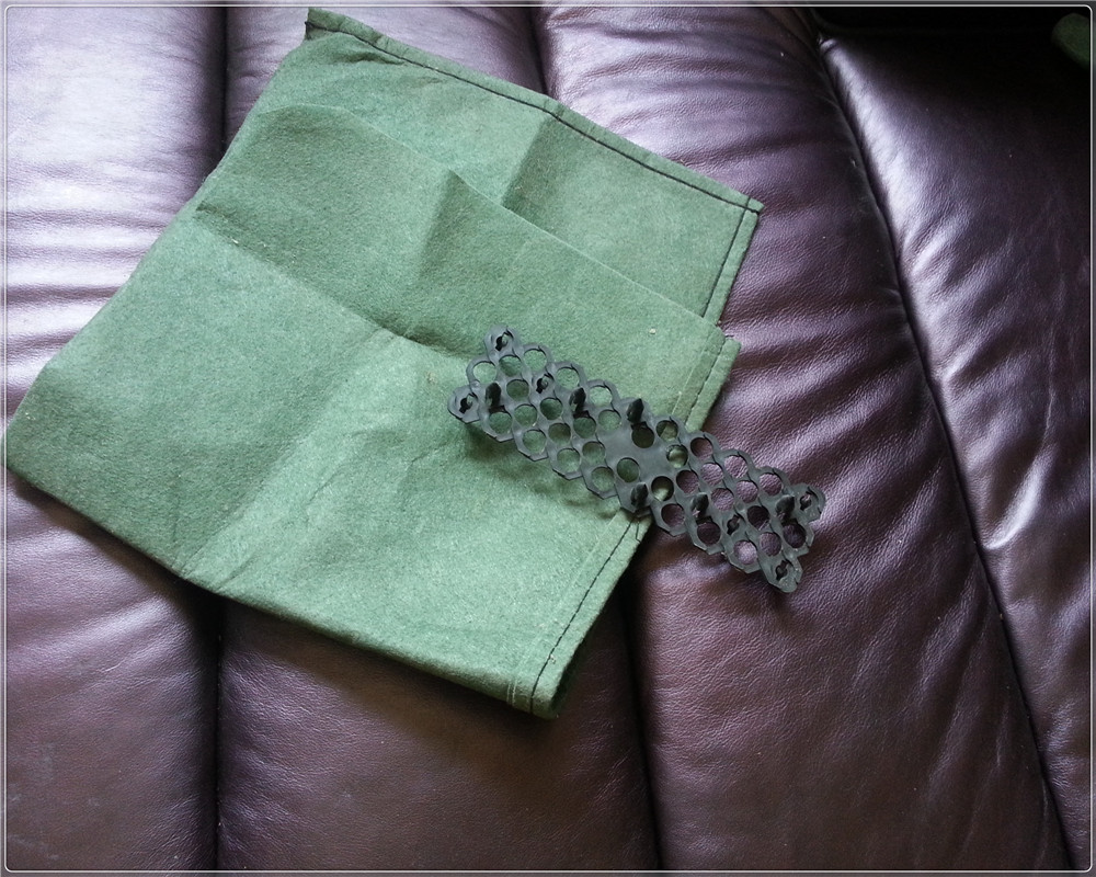 施工中,首先對邊坡表面進行平整,在生態(tài)袋內(nèi)裝滿土,沿管道向上單層三角堆疊安裝(底層采用雙層壓袋堆疊,未安裝錨桿,每三層之間未安裝土工格柵),袋與袋之間用連接扣進行了固定連接。工程完工后,對工程進行了持續(xù)跟蹤監(jiān)測,對工程效果進行了評估。近一年的監(jiān)測,工程效果良好,水工保護結(jié)構(gòu)完整沒有損壞,邊坡穩(wěn)定狀況得到了較好控制,水土流失沒有進一步發(fā)展,使用的生態(tài)袋在風(fēng)吹日曬雨淋后,外觀保持完好,沒有出現(xiàn)風(fēng)化、開裂,袋與袋之間連接緊密,沒有發(fā)生坍塌和滑移。此次生態(tài)袋在管道水工保護工程中的實踐運用,達到了施工周期短、工程造價低、應(yīng)急防護處置等的工程預(yù)期,工程效果較好。